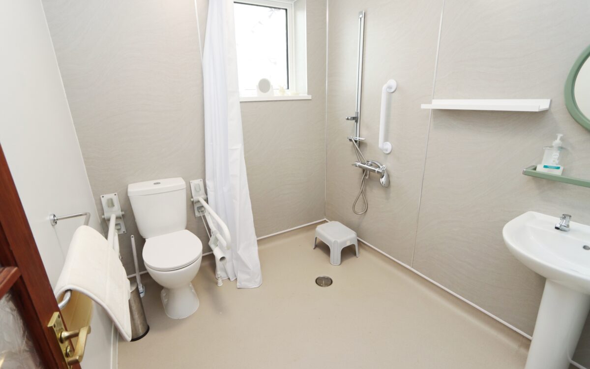 REFITTED WET ROOM: installed 2024 with low level WC, shower area, pedestal washbasin, extractor fan, radiator & uPVC double glazed window.