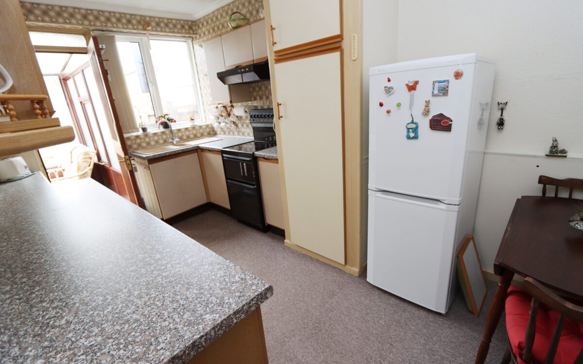 WELL SITUATED 2 BEDROOMED BUNGALOW which benefits from uPVC double glazing, gas central heating (combi boiler), hall, lounge with fireplace, refitted wet room installed 2024, breakfasting kitchen with door to conservatory, 2 bedrooms, long drive for car standage with grass area in front, car port, rear garden which measures approx. 50ft long, is well fenced with garden shed.