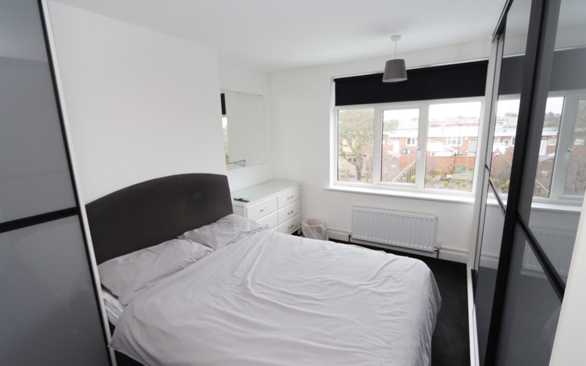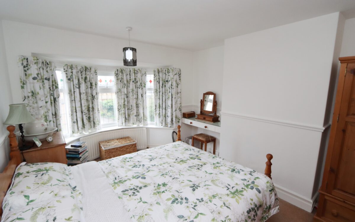 No. 2: at the rear 12’8″ x 8’8″ (3.86m x 2.64m) with 2 sets of fitted wardrobes, radiator and uPVC double glazed window.