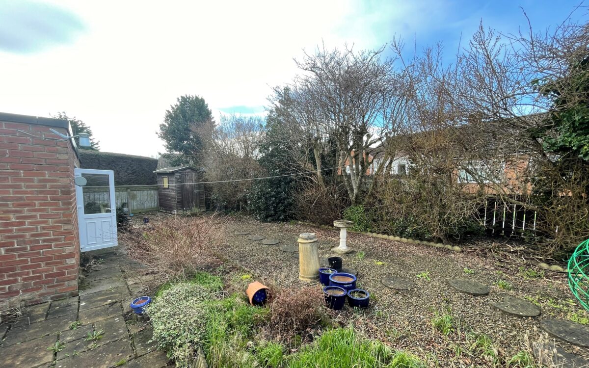 GARAGE: 19’7″ x 9’0″ (5.97m x 2.74m) widening to 14′ (4.27m) at the rear, double doors at the front, tap, power, light, 2 uPVC double glazed windows and uPVC double glazed door to rear garden.