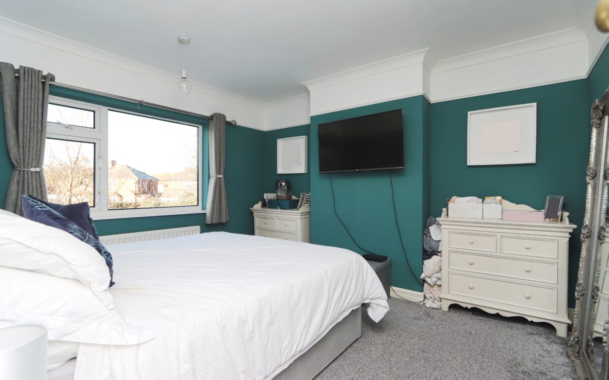 No. 3: at front, 8’ 3” x 7’ 7” (2.51m x 2.31m), uPVC double glazed window with venetian blind, radiator and access to loft space.