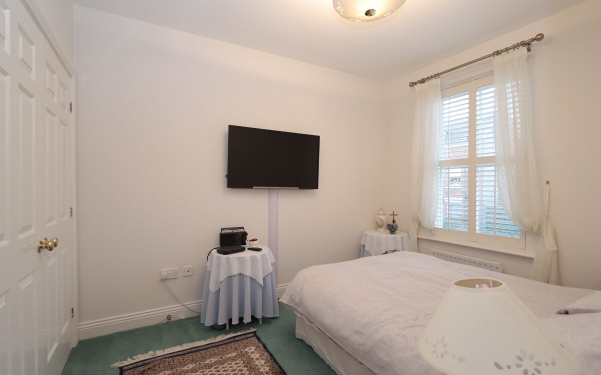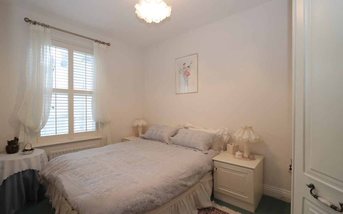 No. 2: at rear, 11’ 4” x 8’ 10” (3.45m x 2.69m), plus double fitted wardrobe, radiator and double glazed Sash window with plantation shutters.