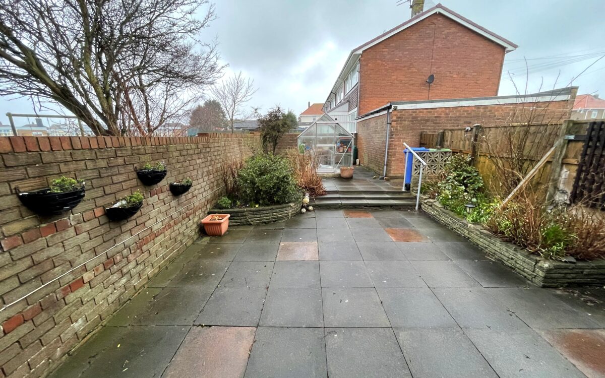 GARDENS: front garden is paved for easy maintenance. The rear garden faces south, measures approx. 44′ (13.41m) long and is mostly paved for easy maintenance.