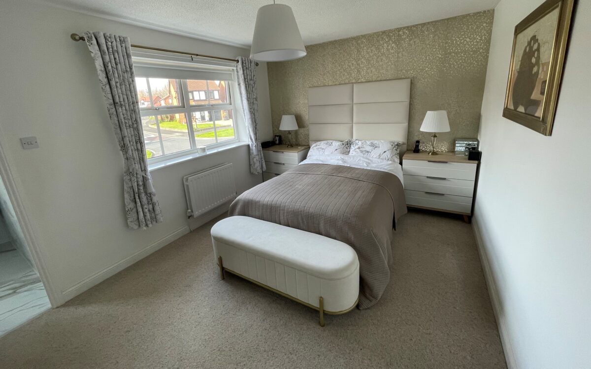 No. 1: at front, 13’ 5” x 10’ 3” (4.09m x 3.12m), double banked radiator, uPVC double glazed window with roller blind and door to en-suite.