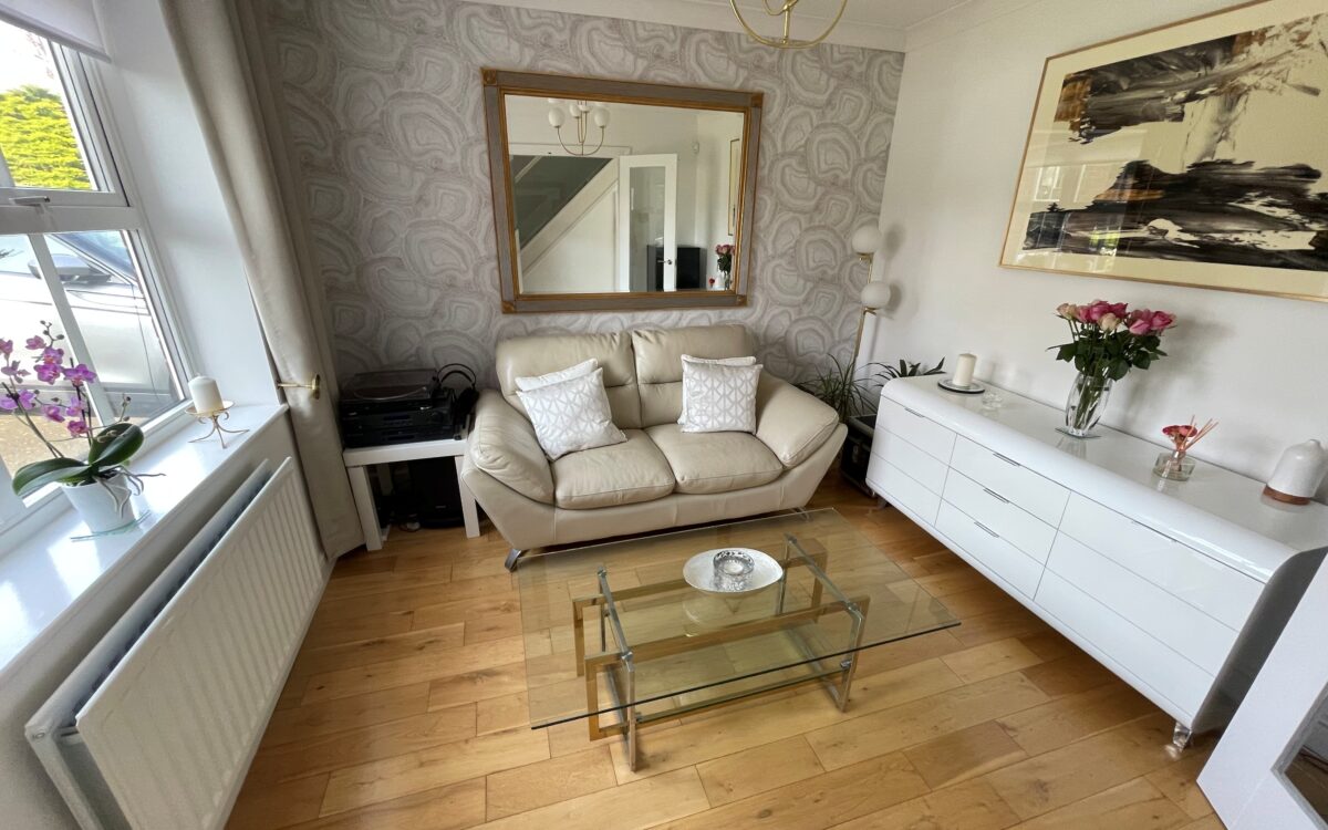 DINING ROOM / SECOND RECEPTION ROOM: 10’ 2’ x 10’ 1” (3.10m x 3.07m), oak flooring, double banked radiator, uPVC double glazed window with roller blind and glazed double opening doors leading to hallway.