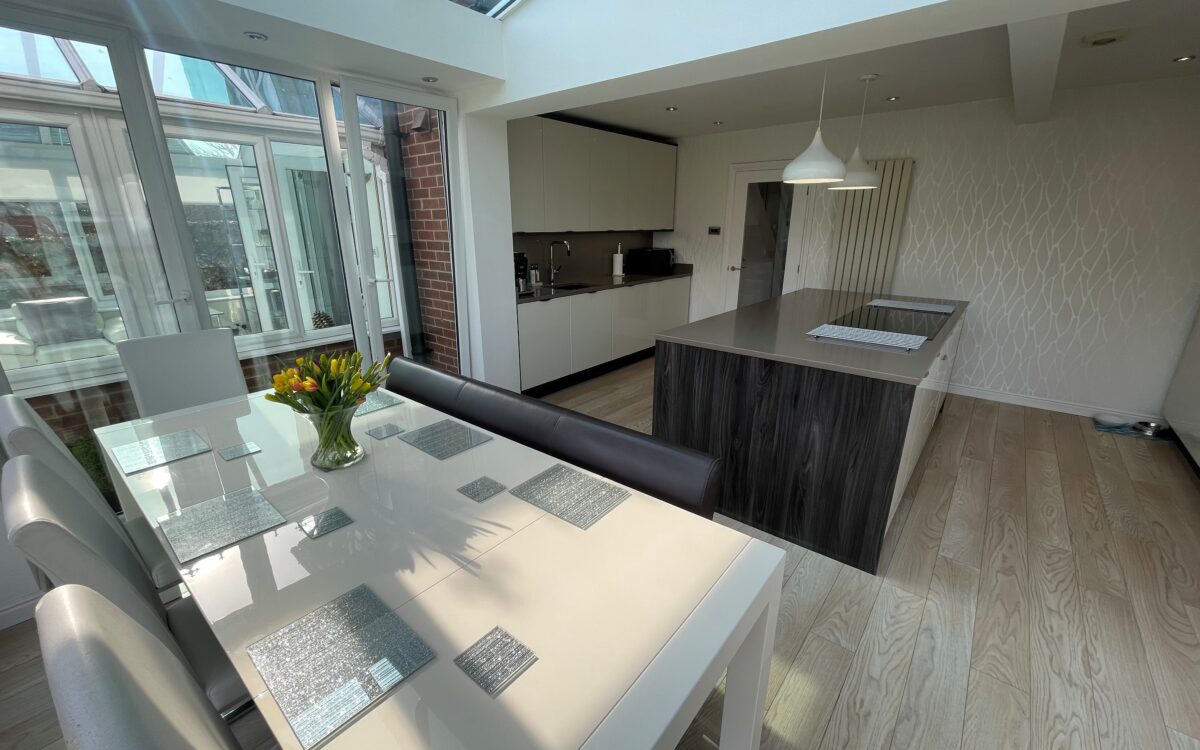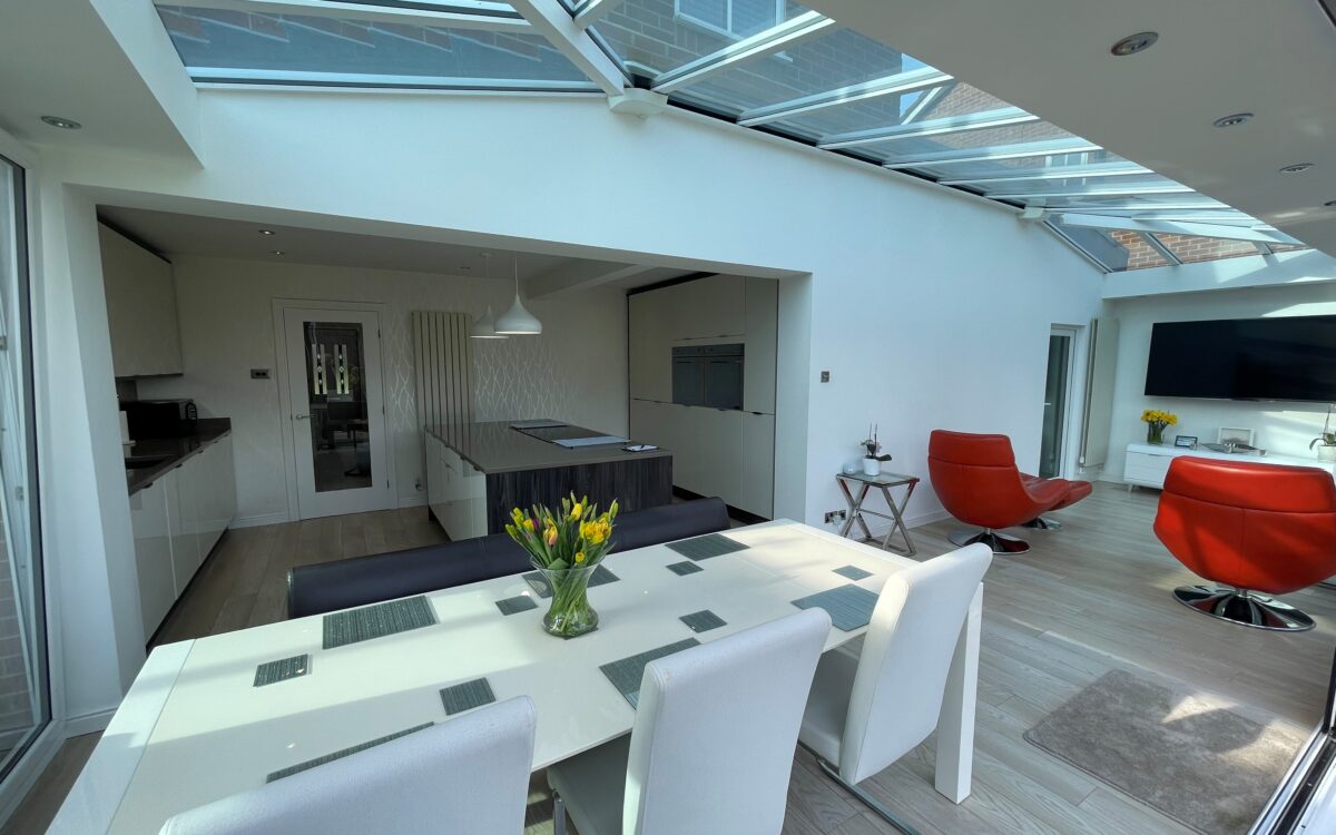 Dining / Family area: uPVC double glazed windows, glass tinted roof, upright double radiator, numerous concealed down lighters and 2 sets of bi-folding doors overlooking and giving access to the rear garden.