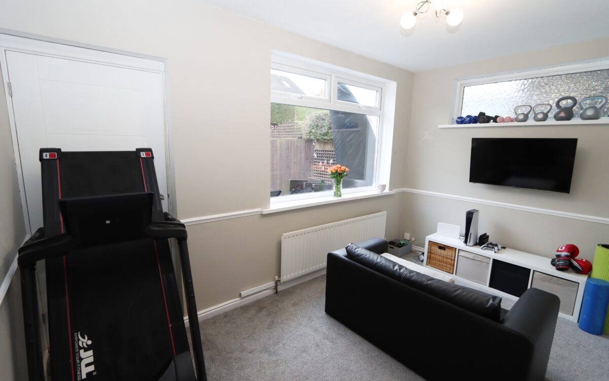 SECOND LOUNGE / DINING ROOM: 13’ 6” x 8’ 0” (4.11m x 2.44m), radiator, dado rail, uPVC double glazed window with roller blind, door to rear garden and glazed window with roller blind.