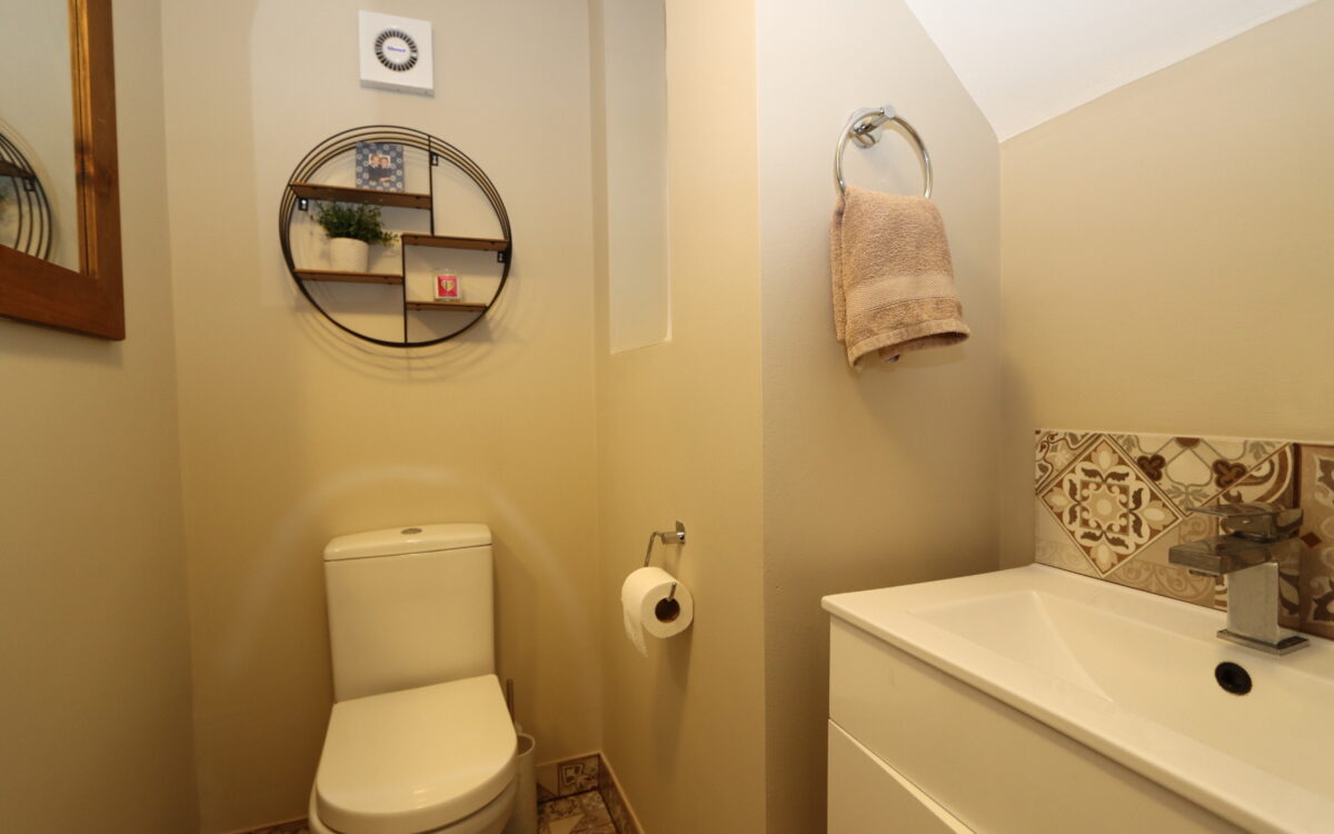 DOWNSTAIRS WC: tiled floor, vanity unit, low level WC and extractor fan.
