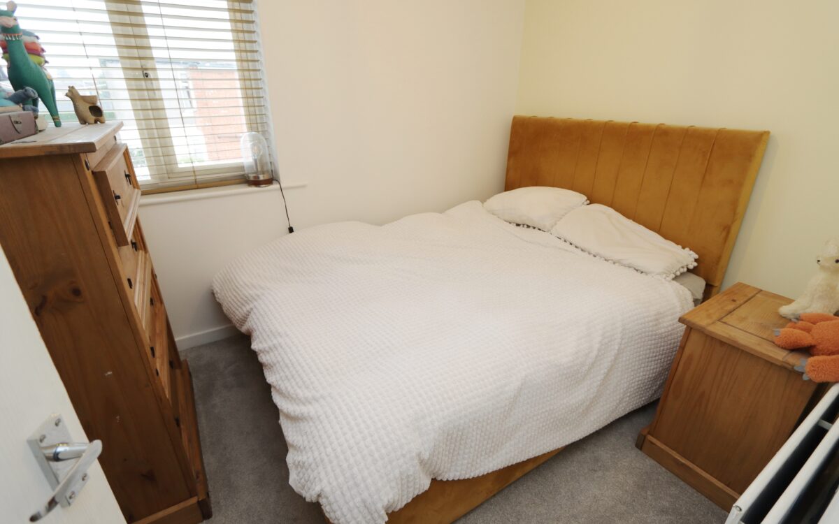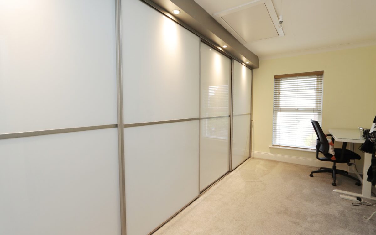No. 1: at front, 16’ 3” x 9’ 2” (4.95m x 2.79m) including fitted wardrobes all along one wall with sliding doors & down lighters, radiator, uPVC double glazed window with venetian blind and access to loft space.
