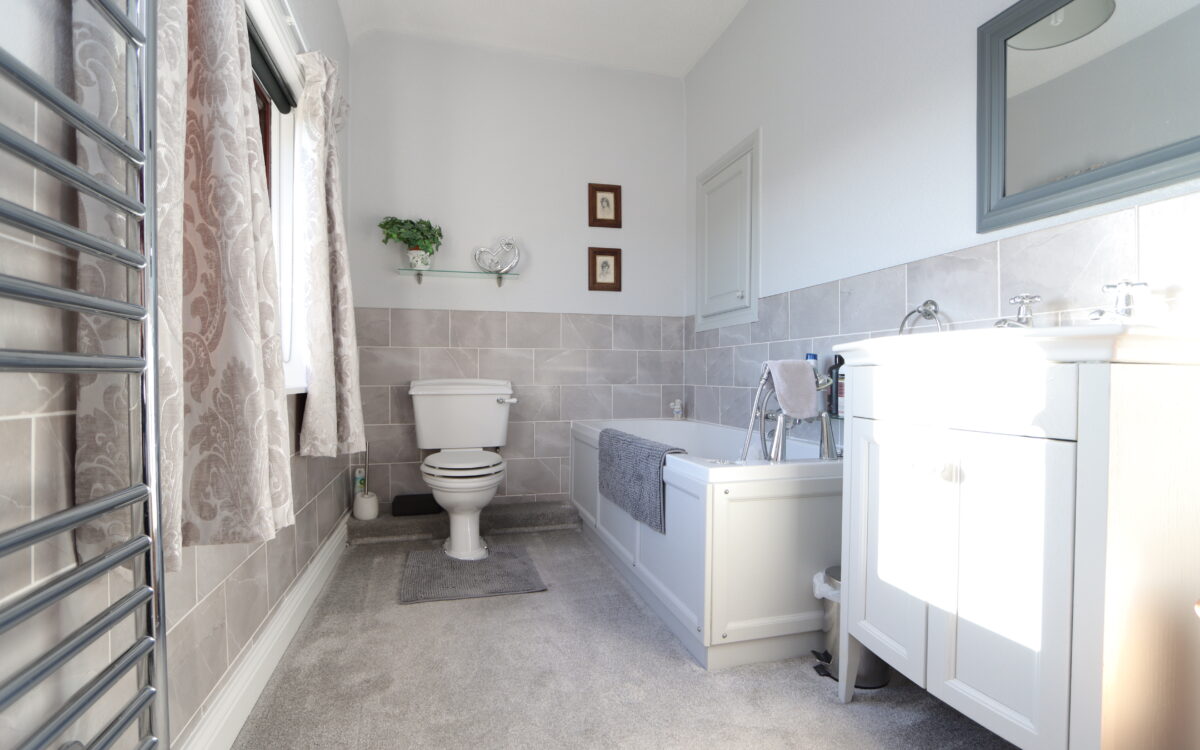 PLUS: EN-SUITE BATHROOM: 9’ 7” x 6’ 1” (2.92m x 1.85m), part tiled walls, uPVC double glazed window with splendid open countryside views, stainless steel upright towel radiator, low level WC, panelled bath with shower attachments on tap and vanity unit with washbasin.