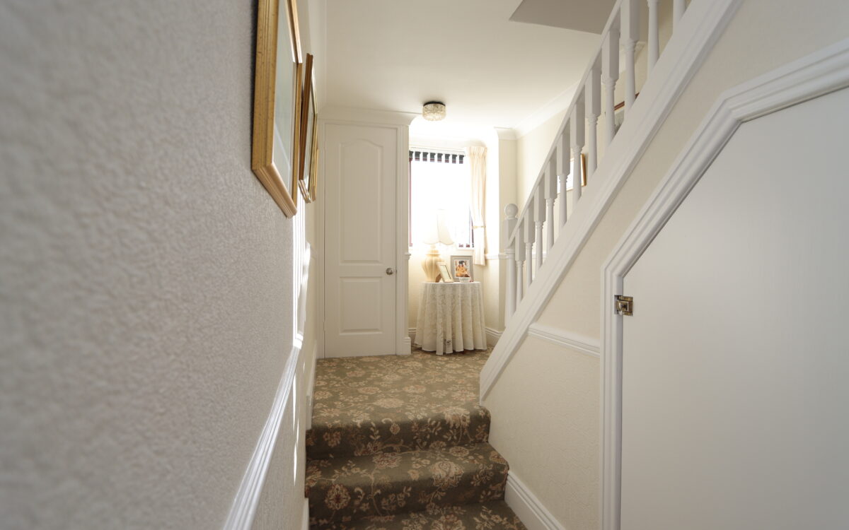 INNER HALLWAY: spindle staircase to first floor, fitted understairs store cupboard, radiator, second cupboard housing ‘Baxi’ gas fired combination boiler installed 2017 (serviced annually and also carrying 2 years of a 10 year guarantee) and uPVC double glazed window with vertical louvred blinds and garden aspect.