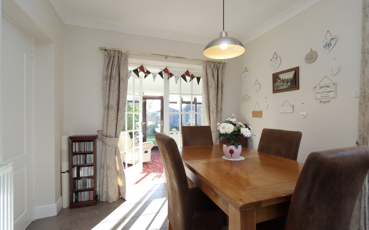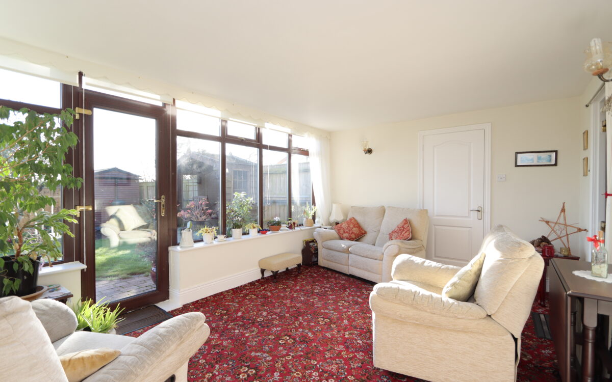 BEAUTIFULLY SITUATED AND UNQIUE THREE BEDROOMED DETACHED HOME which has the benefit of adjoining and overlooking the field of Murton Equestrian Centre with splendid open countryside/farmland views beyond. This property has the advantage of uPVC double glazing, gas central heating (combi boiler), the garage has been repurposed to provide a utility room, storage area & workshop, 2 generous ground floor reception rooms, refitted dining kitchen, uPVC double glazed sun lounge with garden aspect, downstairs WC, shower room, 3 well proportioned bedrooms with fitted wardrobes – the main with en-suite bathroom, large walled driveway providing off road standage for up to 8 vehicles and sunny south facing rear garden which is very private and not overlooked. There are also 12 solar panels to the southerly facing roof which are owned outright.