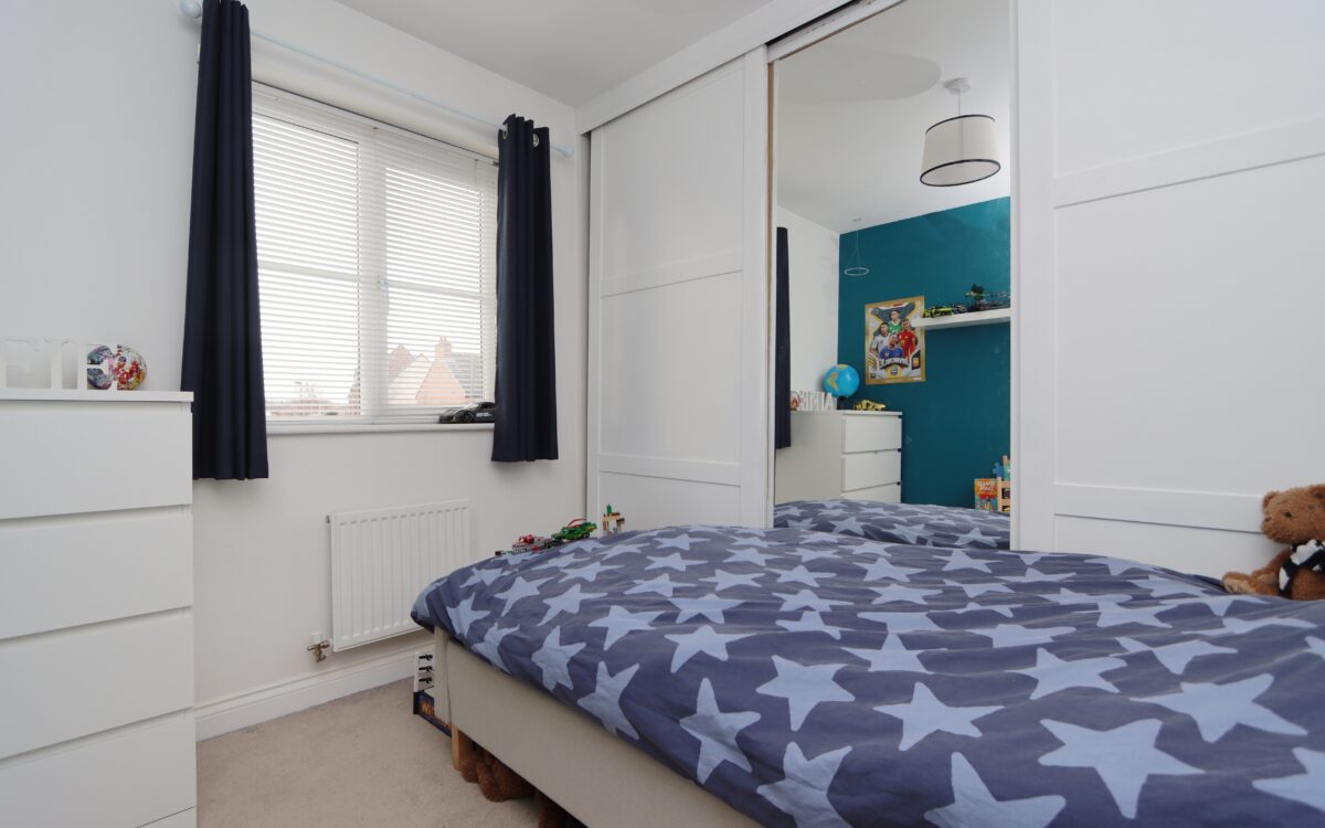 No. 2: at front, 8’ 10” x 7’ 8” (2.69m x 2.34m), plus fitted wardrobes with sliding doors, uPVC double glazed window with venetian blinds and radiator.