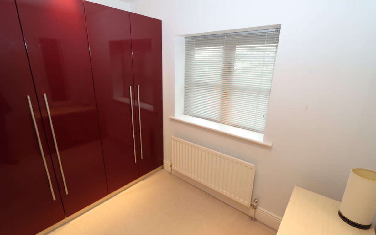 No. 1: at the rear 15’3″ x 13’2″ (4.65m x 4.01m) including fitted wardrobes and dressing table all along one wall, 2 radiators with covers and 2 double glazed sealed unit windows.