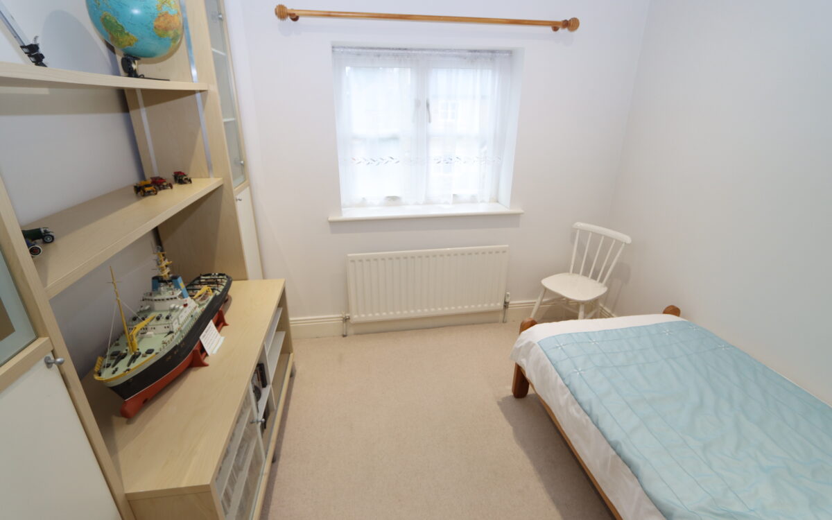 No. 4: at the rear 10’5″ x 9’4″ (3.17m x 2.84m max overall ‘L’ shaped measurement) including fitted wardrobes and matching chest of drawers, radiator and double glazed sealed unit window.