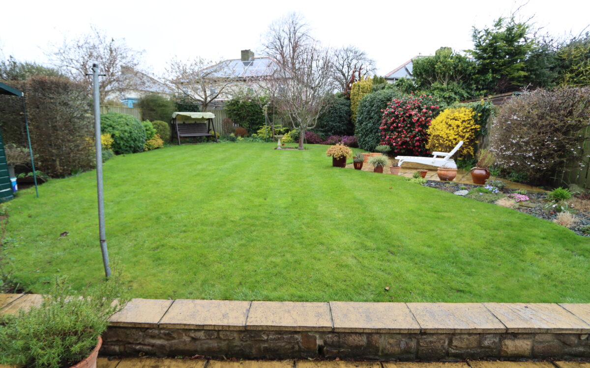 GARDENS: to the front there is lawn with borders and block paved path. The large rear garden which measures 59′ long (17.98m) is well stocked and private with a North/Westerly aspect, lawn, borders, wood shed, swinging chair, paved patio, tap and gated side entrance.