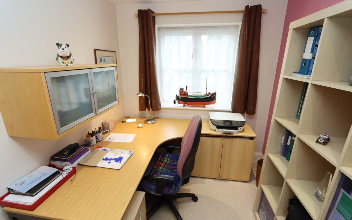 STUDY: 7’5″ x 9’7″ (2.26m x 2.92m) with radiator, 4 concealed downlighters and double glazed sealed unit window.