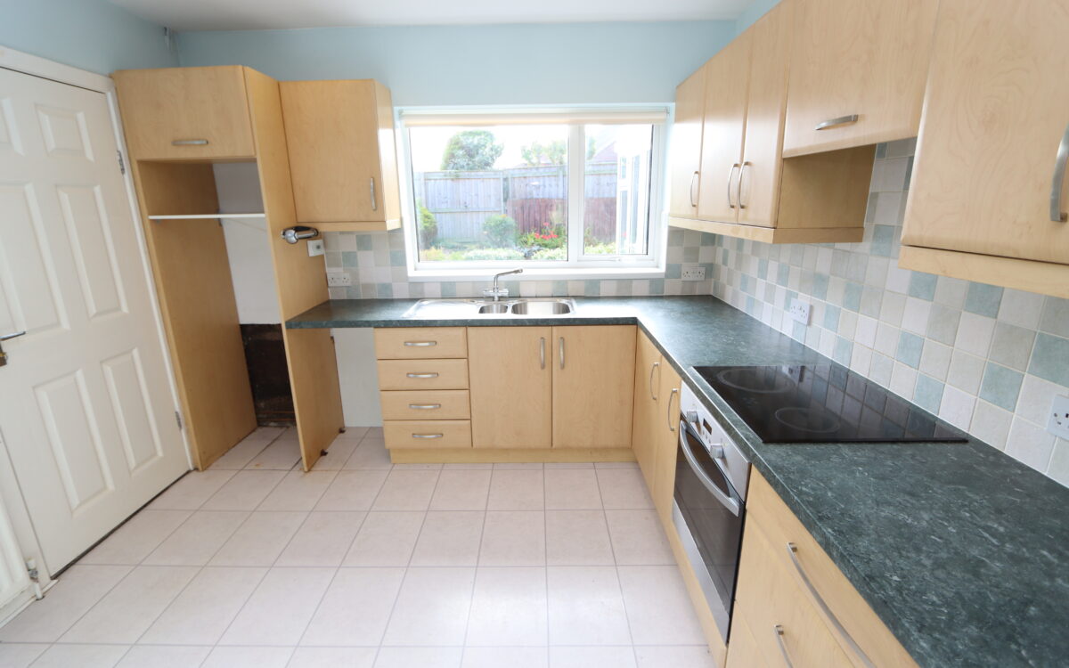 BREAKFASTING KITCHEN 10’4″ x 10’0″ (3.15m x 3.05m) fitted wall & floor units, ‘John Lewis’ hob, illuminated extractor hood above, ‘Zanussi’ oven, partially tiled walls, radiator, 2 uPVC double glazed windows and door to garage.