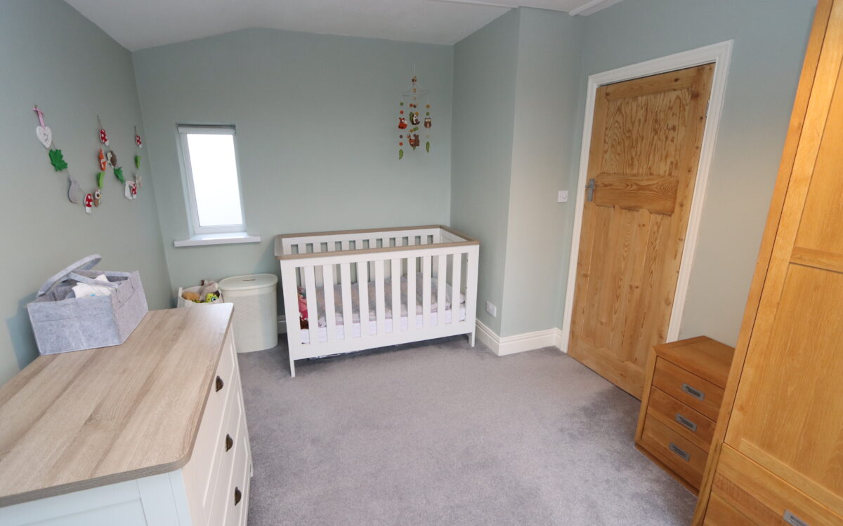 No. 2: 9’8″ x 12’11” (2.95m x 3.94m) with radiator, 2 uPVC double glazed windows and access to loft space via folding ladder.