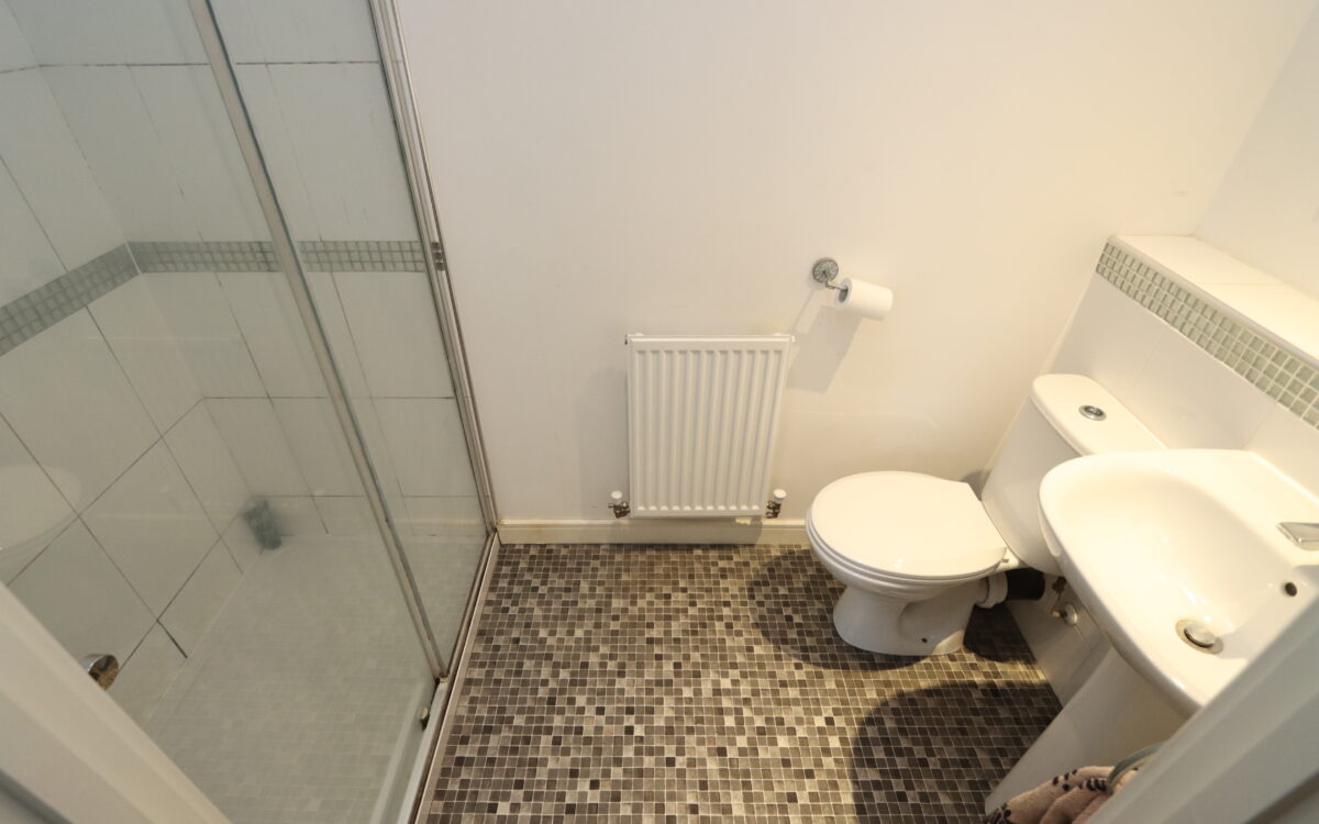 plus: EN-SUITE SHOWER ROOM: pedestal washbasin, low level WC, fully-tiled shower cubicle, extractor fan, radiator & 3 concealed downlighters.