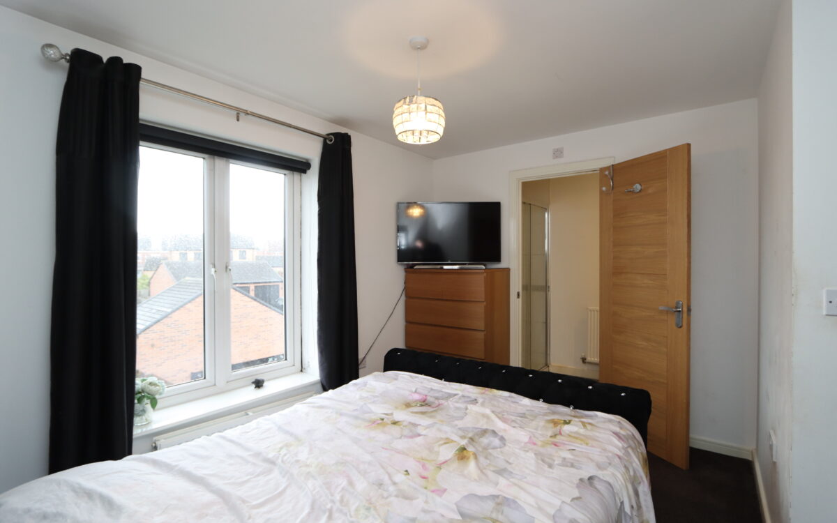 No. 1 11′ 8″ x 11′ 3″ (3.56m x 3.43m) including fitted wardrobe & fitted store cupboard, radiator & uPVC double glazed window with roller-blind: