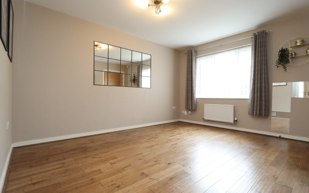 LIVING ROOM: 11′ 1″ x 13′ 7″ (3.38m x 4.14m) 2 radiators & uPVC double glazed window with vertical louvred blind.