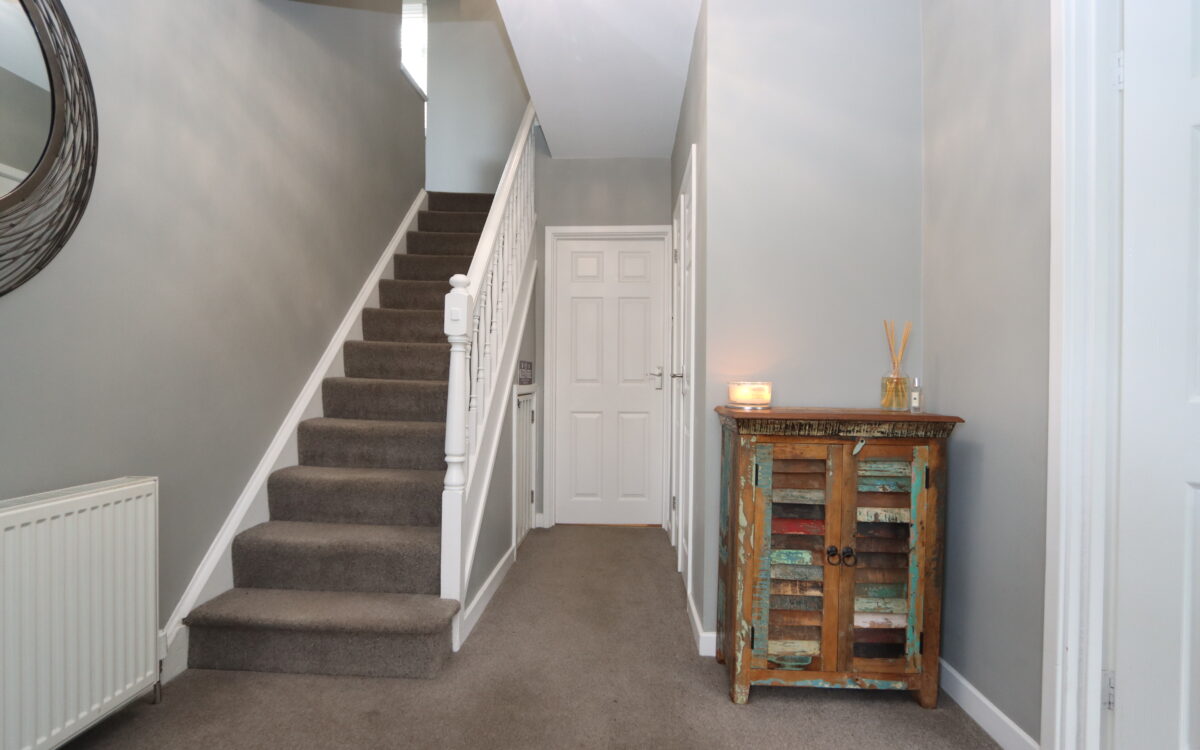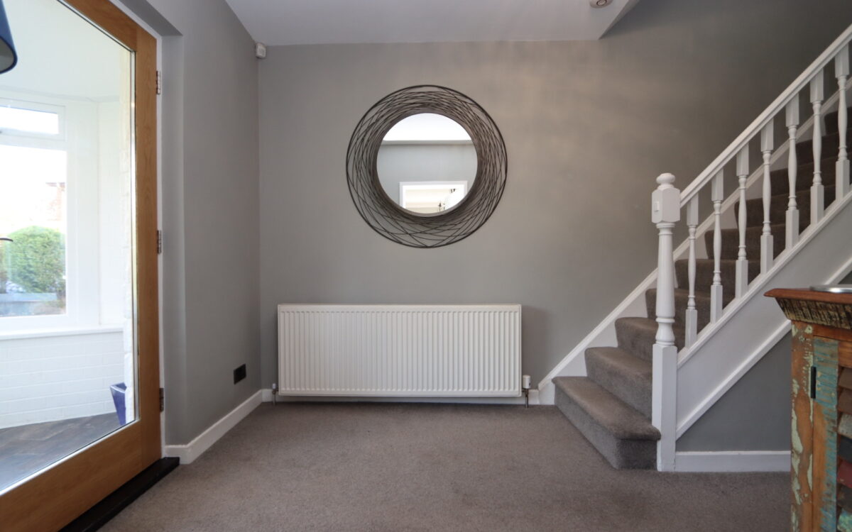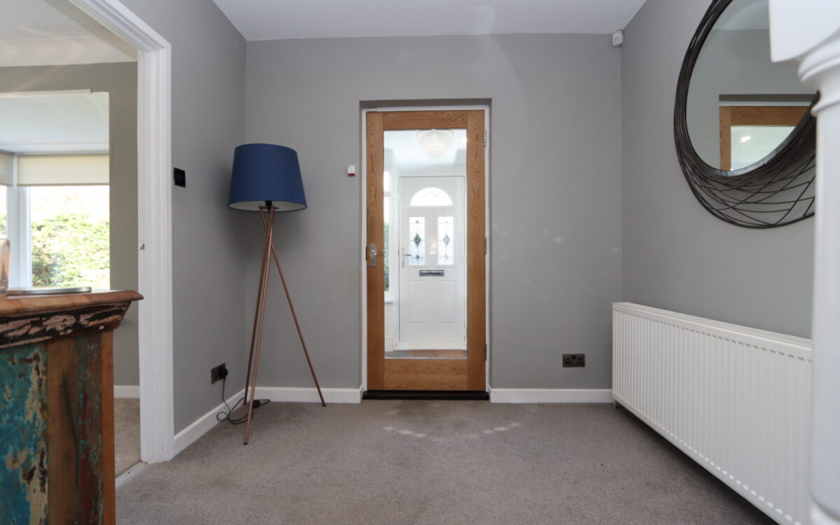 SPACIOUS ENTRANCE HALL: radiator & double fitted cloaks cupboard.