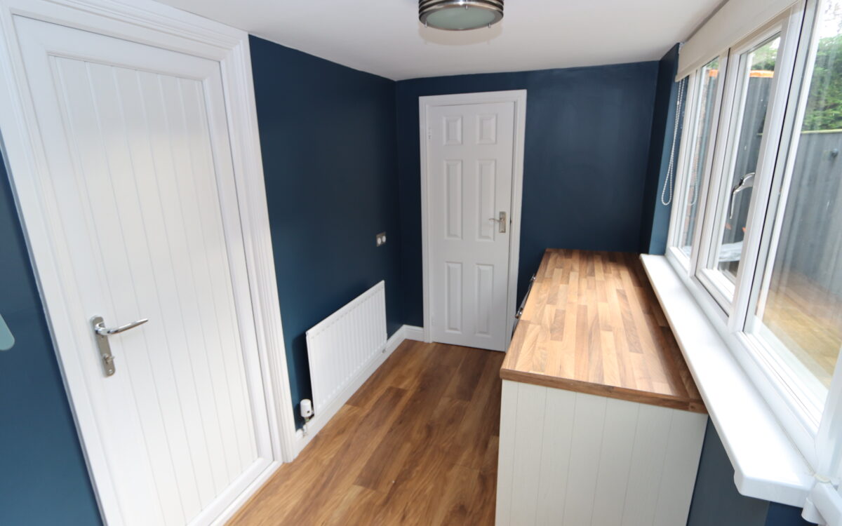 UTILITY ROOM: 5’9 x 10’11” (1.75m x 3.33m) radiator, plumbing for washing machine, uPVC double glazed window & uPVC double glazed door to rear.