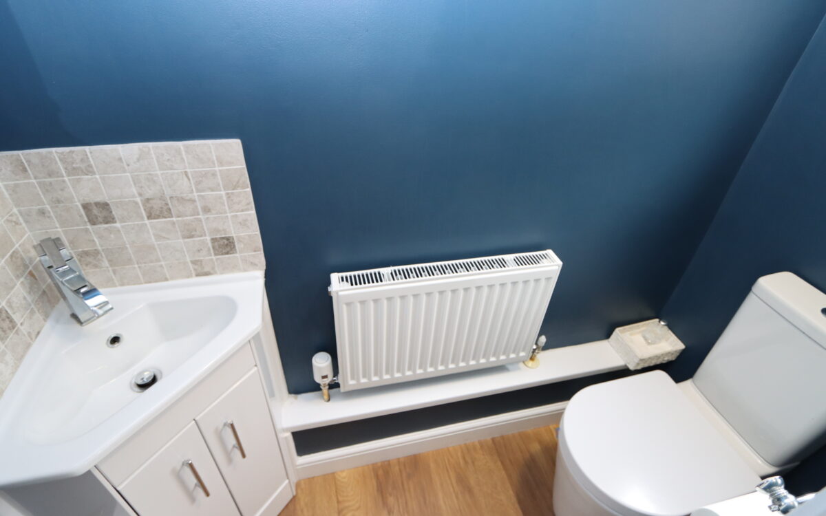 CLOAKROOM: radiator, low level WC, vanity unit & uPVC double glazed window.
