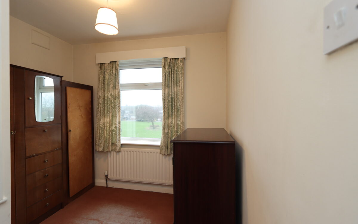 No. 3: 8’6″ x 8’3″ (2.59m x 2.51m max overall measurement) including fitted cupboard, radiator and uPVC double glazed window with a fairly open aspect over green.