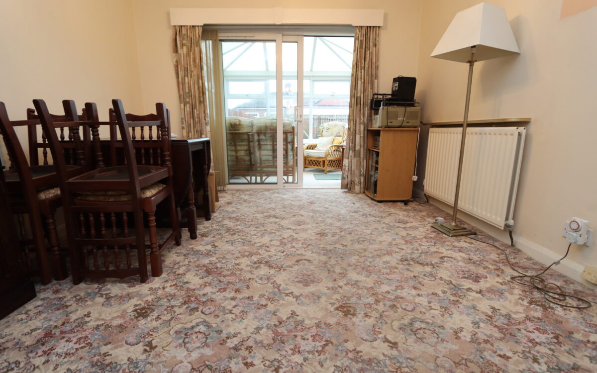 DINING ROOM: at the rear 10’11” x 11’5″ (3.33m x 3.48m) with radiator and double-glazed patio door to conservatory.