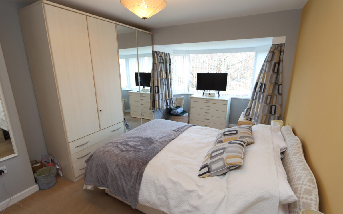 No. 1: 15’8″ x 10’3″ (4.78m x (3.12m) including uPVC double glazed bay window with vertical louvred blinds plus double fitted wardrobe and double-banked radiator.