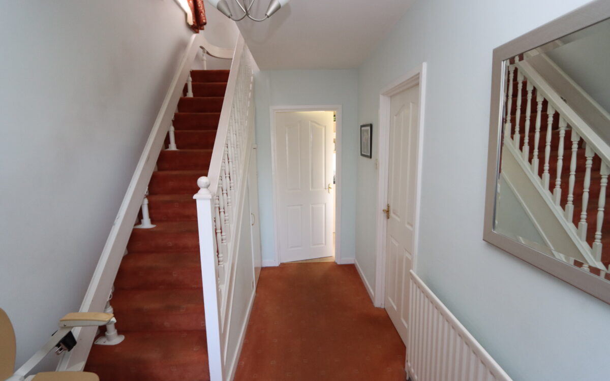HALL: 6’10” x 13’11” (2.08m x 4.24m) composite door, understairs store cupboard and radiator.