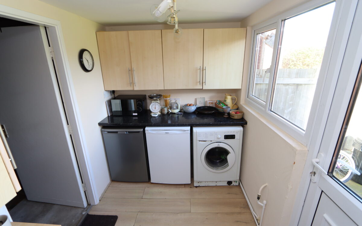 UTILITY ROOM: 7’11” x 6’0″ (2.16m x 1.83m) plumbing for washing machine, radiator & uPVC double glazed window and door to rear garden.