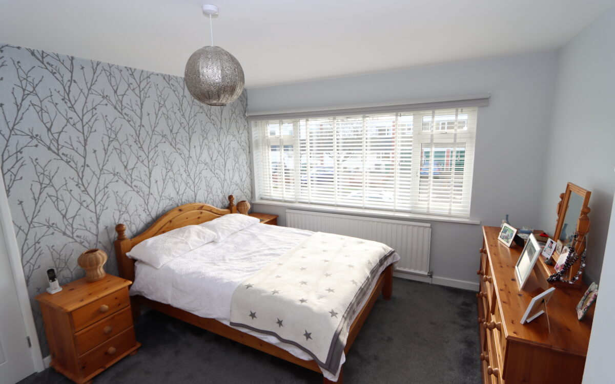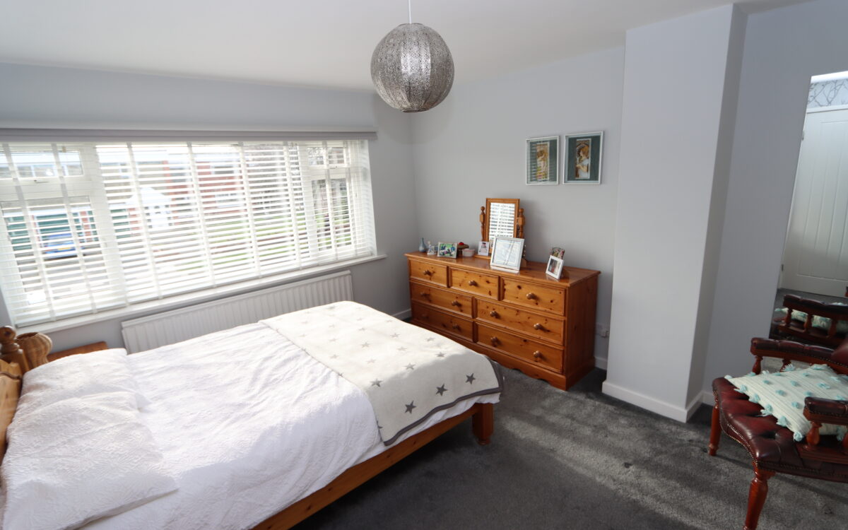 No. 3: 9’ 0” x 8’ 2” (2.74m x 2.49m), uPVC double glazed window with venetian blind and radiator.