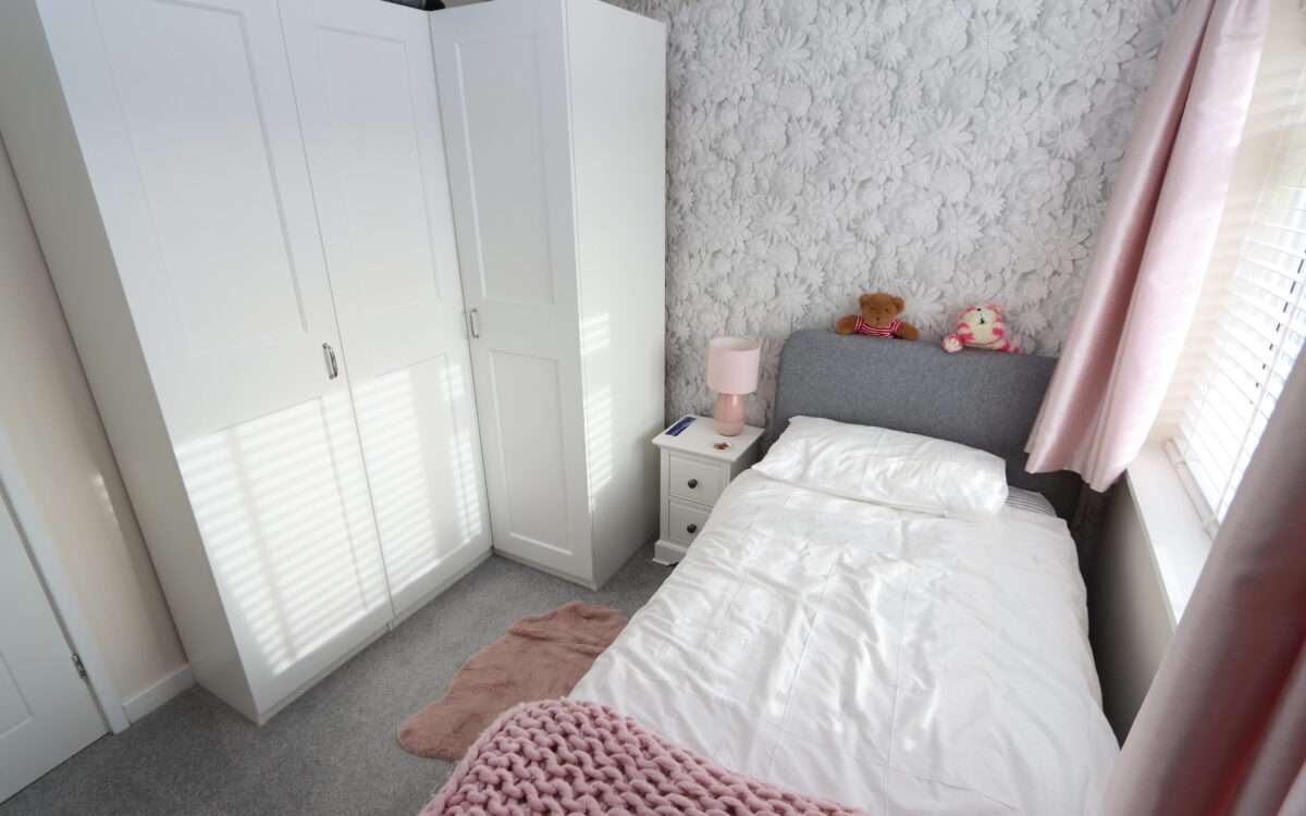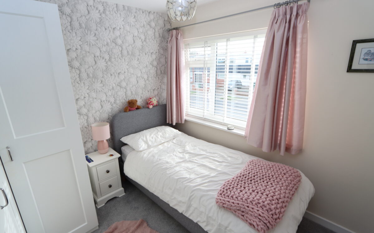 No. 1: 12’ 4” x 10’ 1” (3.76m x 3.07m), plus fitted wardrobes on 1 wall, uPVC double glazed window with venetian blind and radiator.