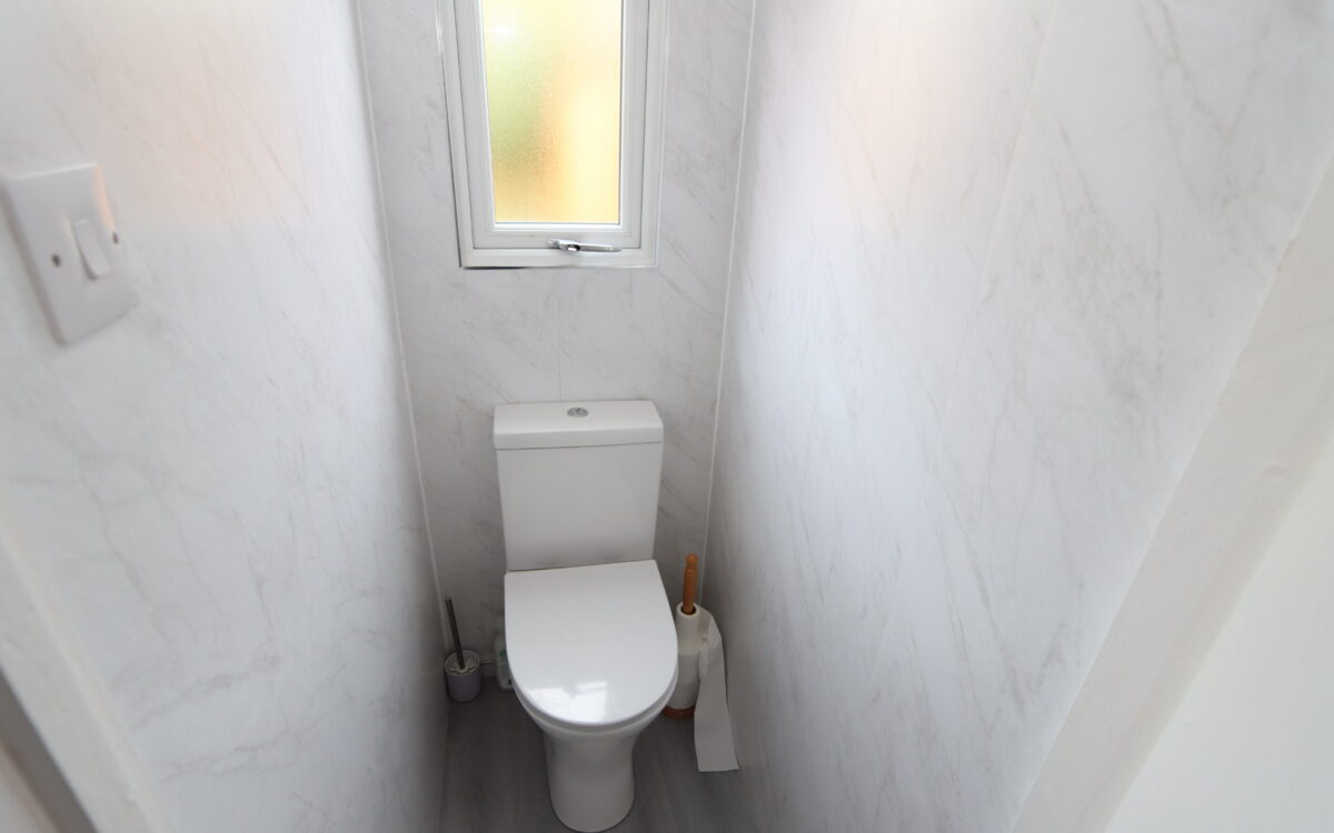 REFITTED DOWNSTAIRS WC: with low level WC and concealed down lighter.